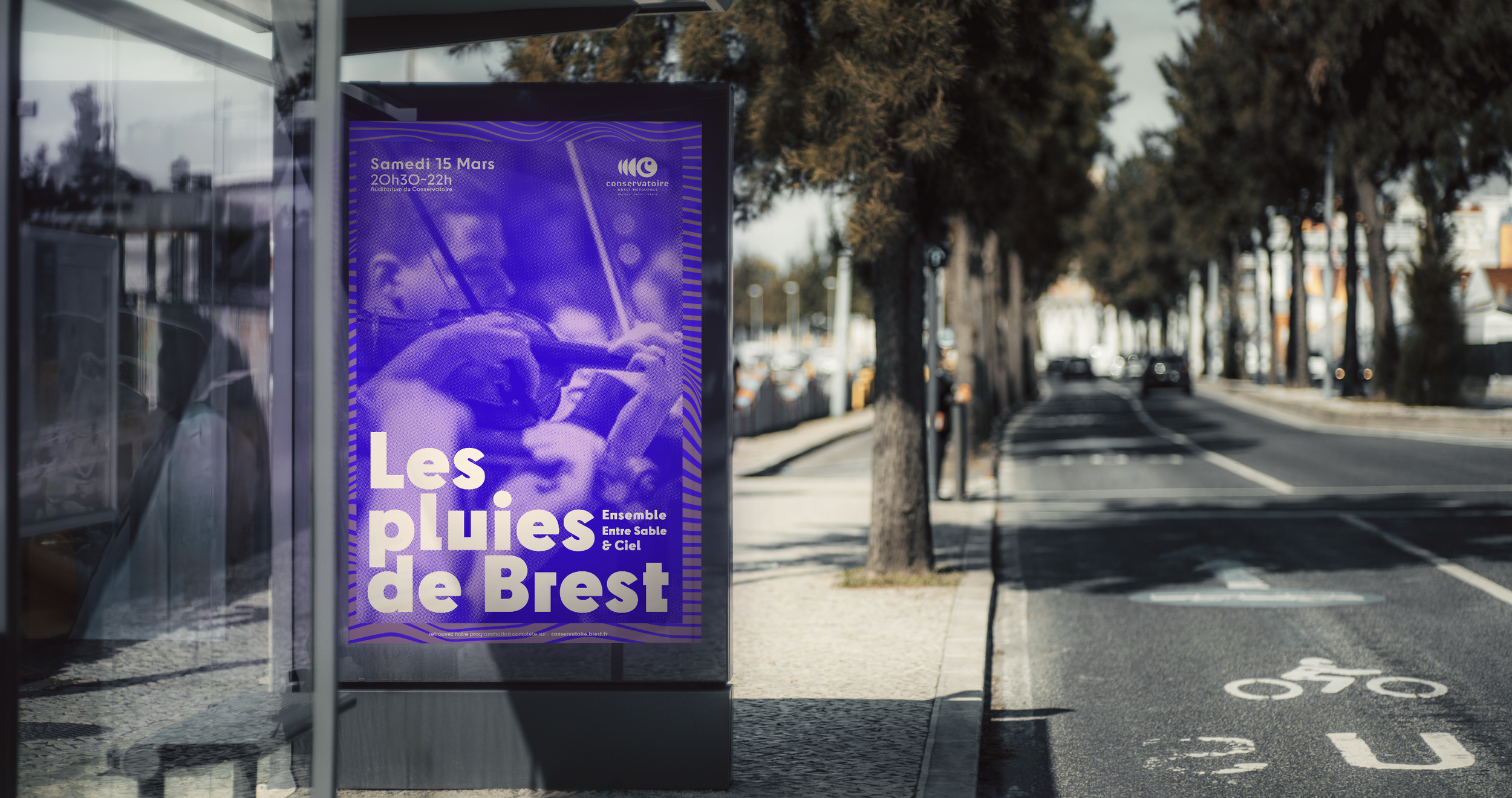 Affichage Urbain & Signalétique : Campagnes de communication grand format pour les abribus et l'espace public, renforçant la visibilité du Conservatoire au cœur de Brest Métropole.